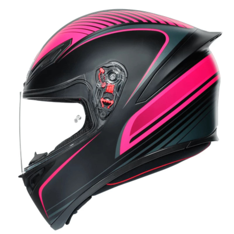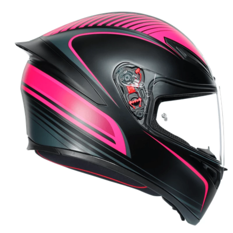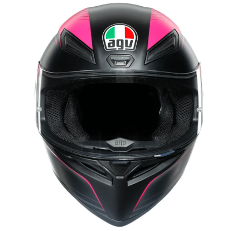 The AGV K1 Helmet has an aerodynamic shape, ventilation scheme, and spoiler developed for the wind tunnel tested Corsa R and Pista GP R. The shell and spoiler provide aerodynamic stability at speed and the spoiler itself features a passive rear vent to extract warm air from the helmet as you ride. The K1 also incorporates the central air intake above the visor taken directly from MotoGP developed Pista GP R to provide best-in-class ventilation.