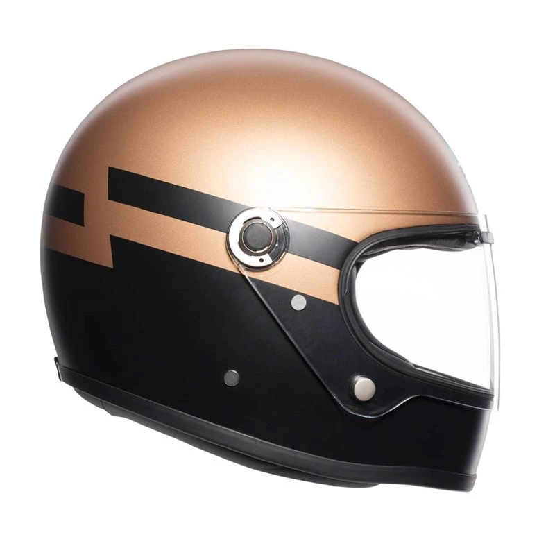 Cleans lines, iconic colours, minimalist combinations: simplicity and elegance mark the early versions that led retirement of the single colour motorcycle helmets. The bold contours on the chin piece and the contrasting lower plate give it an even thinner appearance. The Super AGV reinvents racing as we once knew it.