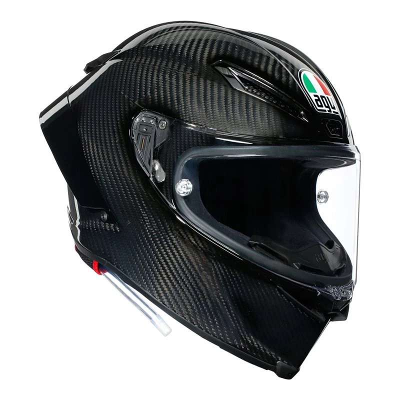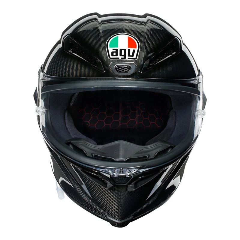 Pista GP RR is an exact replica of the AGV helmet used in races by professional world championship riders. It has therefore received FIM homologation, which certifies the highest possible level of protection, even against any dangerous twisting of the head. Every detail is designed to ensure ultimate performance. The Extreme Carbon shell in 100% carbon fiber guarantees extraordinary lightness, which make it effortless to wear. Its shapes and metal air vents are studied in the wind tunnel and tested by AGV athletes in order to ensure the best aerodynamic penetration and the greatest stability at high speeds, also as a result of the innovative profile of the rear PRO Spoiler. Boasting up to 5mm thickness, the optical class 1 Ultravision visor is an integral part of protection that enables 190° panoramic vision. This means the rider sees the track, adversaries, and obstacles more clearly, before anyone else. The exclusive 360° Adaptive Fit system allows for complete customization of the interior, giving the rider the possibility to select the ideal thickness for the upper part of the head, nape, and cheeks. Essential comfort that allows the rider to concentrate on the goal without distractions.