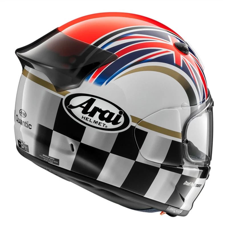 The Arai Quantic sports-touring lid is the first of a new breed of Helmets to meet tougher standards which will ensure that helmets are more protective in real-world accidents.