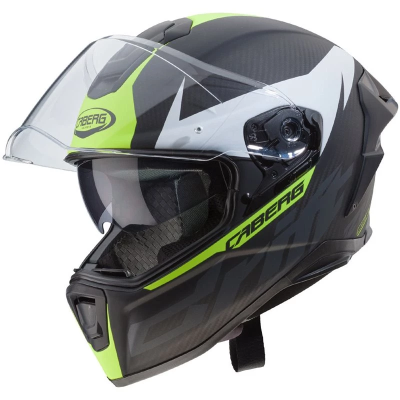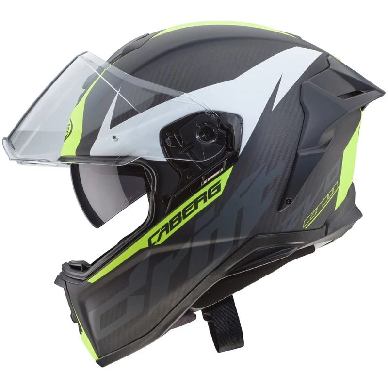 This Caberg helmet features a fibreglass, Kevlar and carbon shell ensuring a lightweight helmet. Simply remove the sun visor and you’re ready to race. The perfect helmet for riding to the track and on the track.