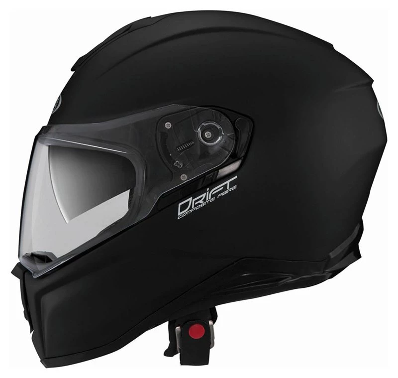 DRIFT is equipped with a transparent anti-scratch visor, an adjustable Pinlock lens Max Vision to avoid fogging, and an integrated antiscratch sunshade visor easily maneuverable with a lateral lever.