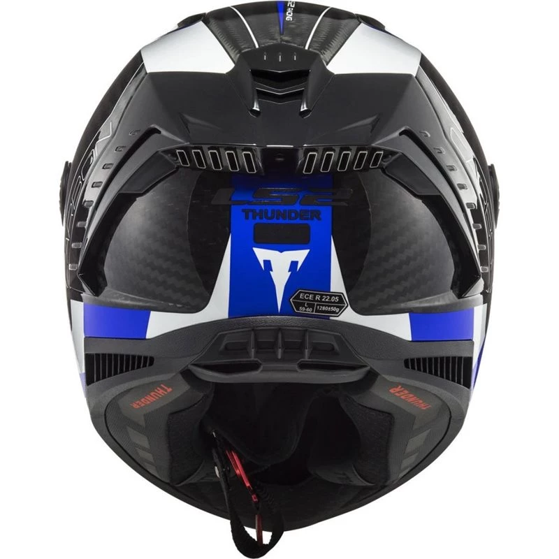 LS2 FF805 Thunder Carbon Helmet. The FF805 Thunder is LS2’s new full face racing helmet. Made of carbon fibre, it has the brand’s latest technological advances derived from MotoGP. It has a large, very resistant screen with predisposition for Pinlock (included), an advanced ventilation system and very comfortable interior padding. It has a quick screen release system.