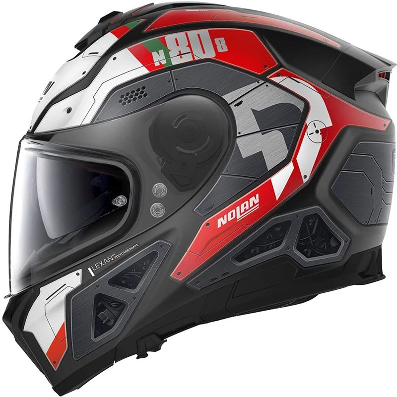 N80-8, made for brave. The new top of the range road full face helmet, the heir to the extremely popular N87. A bold and modern design enhances every detail, from the shell to the air intakes. Thanks to its rich technical characteristics and generous standard equipment, it is the ideal helmet for any occasion, from long urban trips to the most challenging journeys, whatever the motorbike used and the destination to be reached.