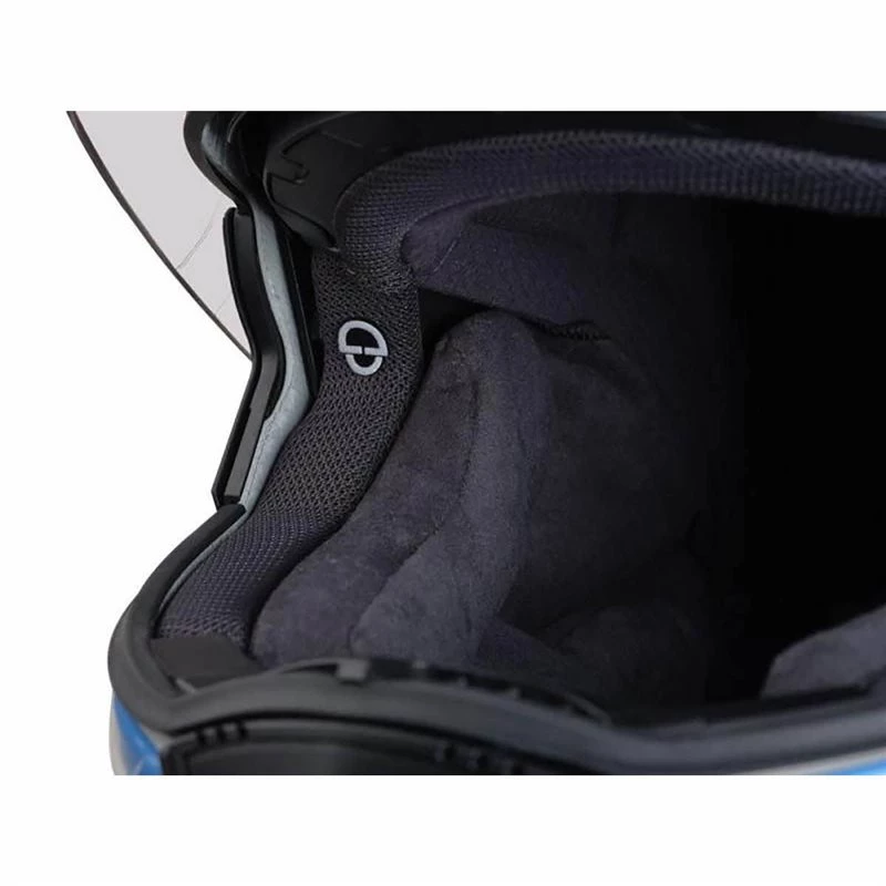 The S2 motorcycle helmet is equipped with an innovative ventilation system combined of multi-channels in the EPS foam shell and head-chin-mouth, allowing effective distribution of fresh air over the entire head area. Many hours in the Schuberth wind tunnel combined with an optimized acoustic shell, wind deflector and ergonomic design have made the Schuberth S2 one of the quietest road helmets on the market with 85 dBA at 100km/h which means you can concentrate easier at higher speeds.